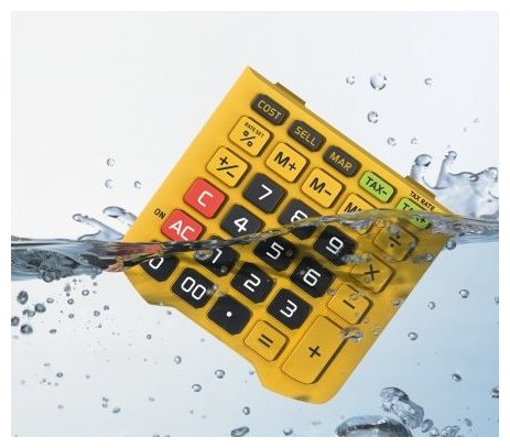 Wodo i kurzo odporny kalkulator który posiada wyjmowaną klawiature, którą można wyjąć i umyć.