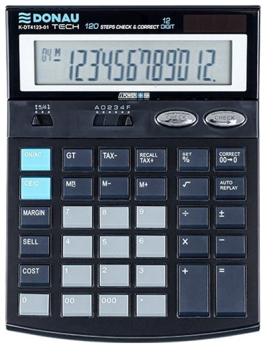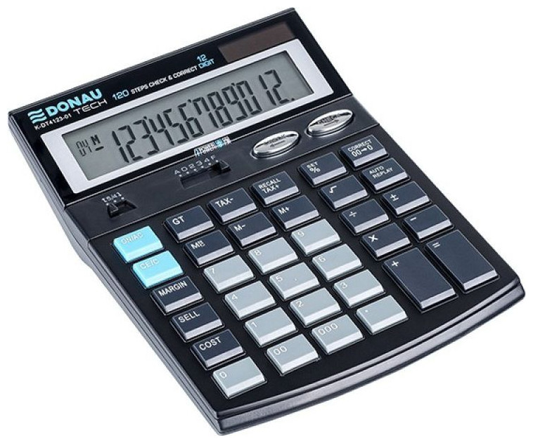 Kalkulator Donau Kalkulator biurowy DONAU TECH, 12-cyfr. wyświetlacz, wym. 186x142x39 mm, czarny