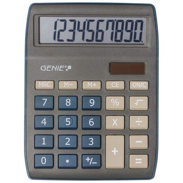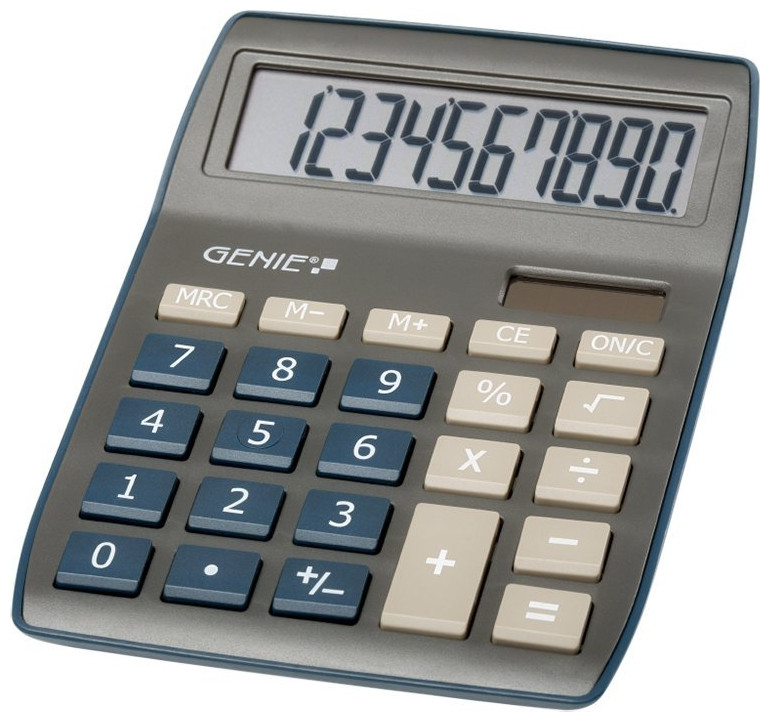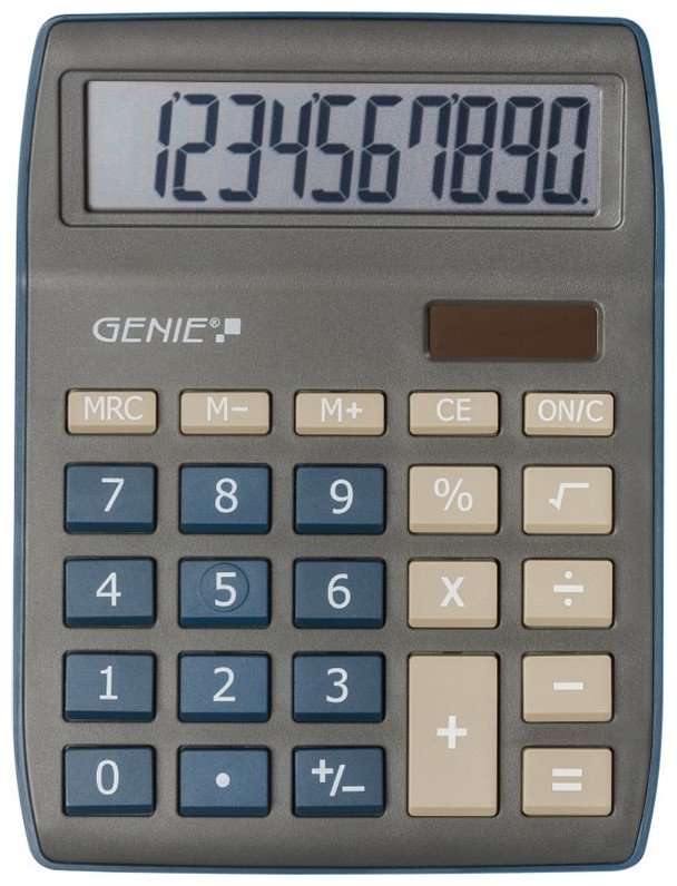Genie 840DB. Διάταξη: Επιφάνεια εργασίας, Μοντέλο: Οθόνη αριθμομηχανής. Ψηφία: 10 ψηφία, Ανακλινόμενη οθόνη. Πηγή ρεύματος: AC/Μπαταρία. Χρώμα προϊόντος: Μπλε, Γκρι