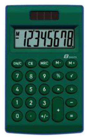 Χαρακτηριστικά: - Αριθμομηχανή 8 θέσεων - 2 τύποι τροφοδοσίας - συνάρτηση ποσοστού - λειτουργία τετραγωνικής ρίζας - λειτουργία μνήμης - λειτουργία αλλαγής πινακίδας - λειτουργία διαγραφής τελευταίας θέσης{Κατασκευή} Πλαστικό. {TAX function} Αρ. {Στρογγυλοποίηση} Αρ. {πλήκτρο μηδέν} Καμία λειτουργία. {Ενσωματωμένος εκτυπωτής} Αρ. {Τύπος τροφοδοσίας} Μπαταρία-ηλιακός. {Τύπος εμφάνισης} 8ψήφιος. {Αυτόματη επανάληψη} Όχι. {Ιστορικό} Διόρθωση του τελευταίου αριθμού . {Other} Υπολογισμοί ποσοστού . {Άλλα} Στοιχεία υπολογισμού. {Other} Αλλάξτε το σύμβολο +/-. {Χρώμα} Πράσινο. {Amount of Memory} Εκτός μνήμης. Γραφείο {Purpose} . Αρχική σελίδα {Destiny}. {Πλάτος [cm]} 6,6 . {Ύψος [cm]} 13