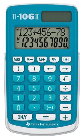Texas Instruments TI 106-II, Τσέπη, Βασική, 2 γραμμές, Μπαταρία/Ηλιακή, Μπλε, Λευκό