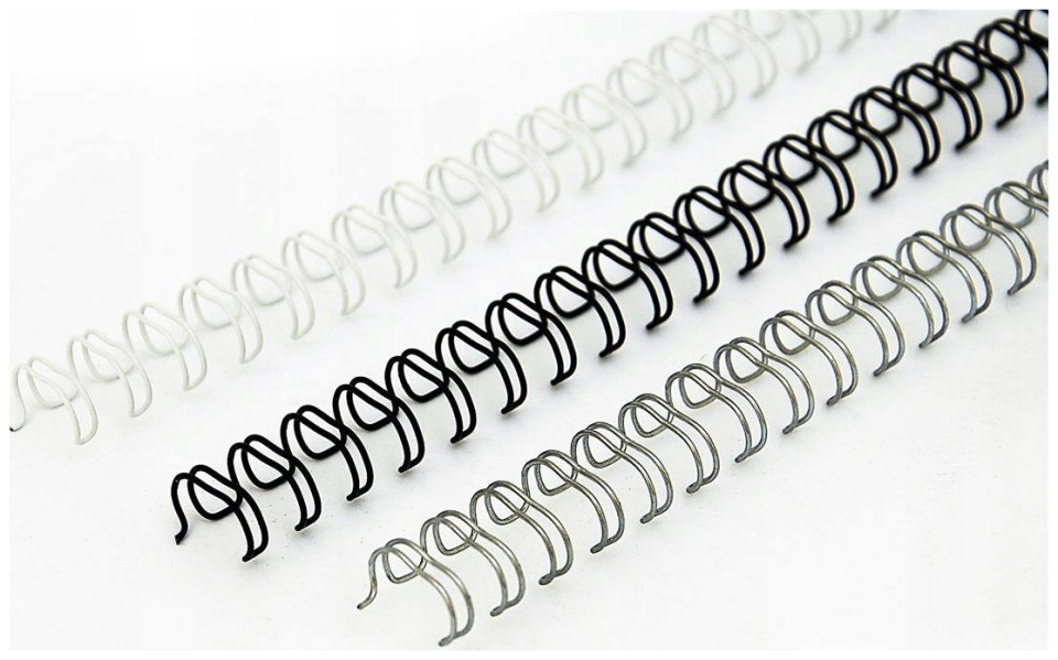 Α4 σπειροειδή σημειωματάρια με μαύρο κάλυμμα Δέσμη εγγράφων έως μορφή Α4 Επιτρέπει τη βιβλιοδεσία εγγράφων με πάχος 81-100 φύλλων (80 g) Βήμα 3:1 Διάμετρος σπονδυλικής στήλης: 1/2", 12,7 mm Συσκευασία 100 τμχ. Διατίθεται σε 5 ελκυστικά χρώματα: λευκό, μαύρο, μπλε, ασημί, χρυσό Οι συρμάτινες ράβδους επιτρέπουν τη σύνδεση εγγράφων με τόνο 3:1 ή 2:1 ότι υπάρχουν τρεις ή δύο τρύπες στη σπείρα ανά ίντσα (2,54 cm) χρησιμοποιείται συχνότερα για βιβλιοδεσία σημειωματάρια, σημειωματάρια, άτλαντες αυτοκινήτων, ημερολόγια.
