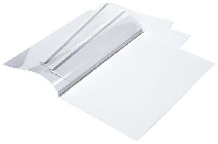 Έτοιμα καλύμματα για θερμικό δέσιμο Ειδική λωρίδα κόλλας τοποθετημένη στη ράχη Επάνω κάλυμμα διαφανές φύλλο 150 mic Πίσω κάλυμμα γυαλιστερό χαρτόνι Chromo Lami 250 g/m2 Επιτρέπει το δέσιμο εγγράφων έως 260 φύλλα A4 (80 g) Συσκευασμένο σε 50 τμχ.