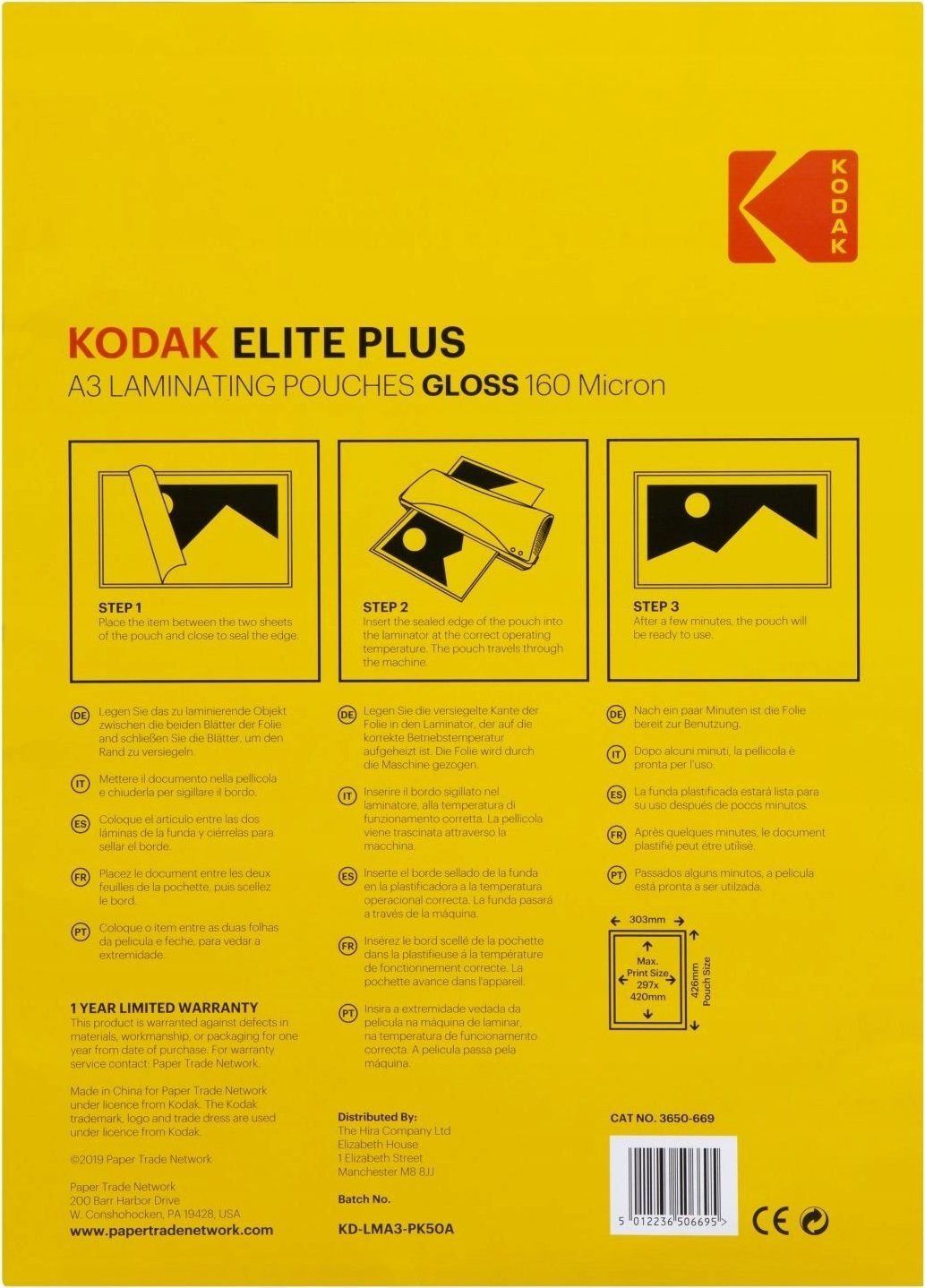 Ταινία πλαστικοποίησης Kodak Kodak 50 τμχ A3 30x42 cm / 160 Microns / Cat 3650-669.