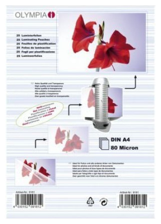 Φύλλο πλαστικοποίησης Olympia A4/80 μικρά/25 τεμάχια (9181)