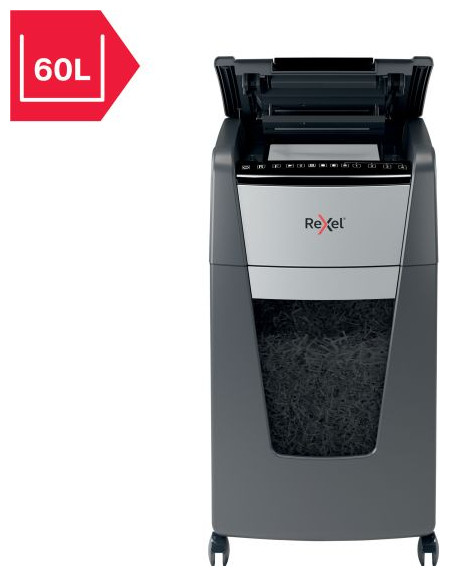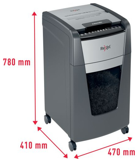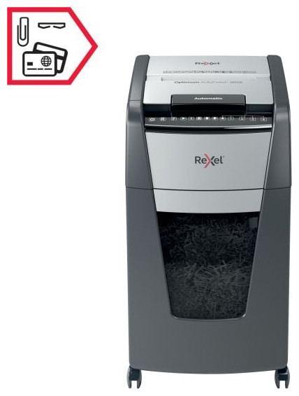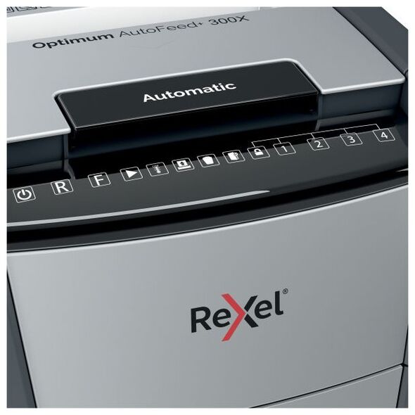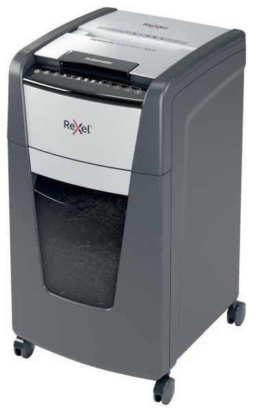 Ο αυτόματος τεμαχιστής χαρτιού Optimum AutoFeed+ 300X τεμαχίζει αυτόματα έως και 300 φύλλα A4 (80 gsm) κάθε φορά, κόβοντας τα φύλλα σε κομφετί (4 x 26 mm), γεγονός που διασφαλίζει το επίπεδο ασφάλειας P-4. Είναι εξοπλισμένο με αυτόματο τροφοδότη και δοχείο τεμαχισμού 60 λίτρων, που το καθιστά ιδανικό για χρήση γραφείου. Δεν απαιτεί χειροκίνητη τροφοδοσία χαρτιού ή προηγούμενη αφαίρεση των συνδετήρων και των συνδετήρων - αυτός ο αυτόματος τεμαχιστής θα κάνει όλη τη δουλειά για εσάς. Ο αυτόματος τροφοδότης μπορεί να χωρέσει έως και 300 φύλλα A4 (80 gsm) κάθε φορά και ο μη αυτόματος τροφοδότης μπορεί να χωρέσει έως και 10 φύλλα χαρτιού κάθε φορά.