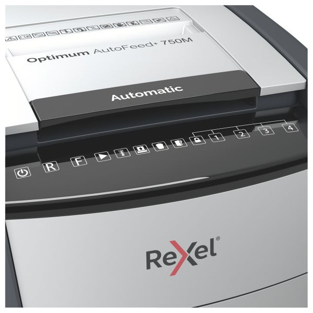 Ο αυτόματος τεμαχιστής χαρτιού Optimum AutoFeed+ 750M τεμαχίζει αυτόματα έως και 750 φύλλα A4 (80 gsm) κάθε φορά, κόβοντας τα φύλλα σε μικροτεμάχια (2 x 15 mm), γεγονός που διασφαλίζει το επίπεδο ασφάλειας P-5. Είναι εξοπλισμένο με αυτόματο τροφοδότη και δοχείο τεμαχισμού 140 λίτρων, που το καθιστά ιδανικό για χρήση γραφείου. Δεν απαιτεί χειροκίνητη τροφοδοσία χαρτιού ή προηγούμενη αφαίρεση των συνδετήρων και των συνδετήρων - αυτός ο αυτόματος τεμαχιστής θα κάνει όλη τη δουλειά για εσάς.