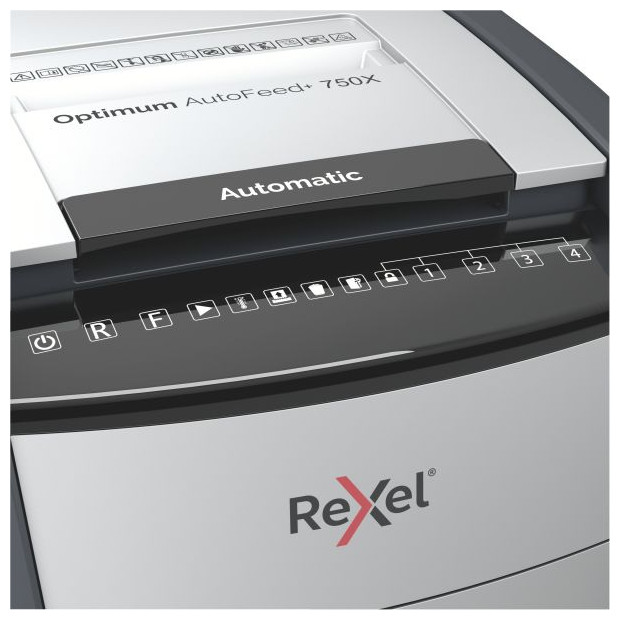 Ο αυτόματος τεμαχιστής χαρτιού Optimum AutoFeed+ 750X τεμαχίζει αυτόματα έως και 750 φύλλα A4 (80 gsm) κάθε φορά, κόβοντας τα φύλλα σε κομφετί (διαστάσεις 4 x 30 mm), γεγονός που εξασφαλίζει επίπεδο ασφάλειας P-4. Είναι εξοπλισμένο με αυτόματο τροφοδότη και δοχείο τεμαχισμού 140 λίτρων, που το καθιστά ιδανικό για χρήση γραφείου. Δεν απαιτεί χειροκίνητη τροφοδοσία χαρτιού ή προηγούμενη αφαίρεση των συνδετήρων και των συνδετήρων - αυτός ο αυτόματος τεμαχιστής θα κάνει όλη τη δουλειά για εσάς.