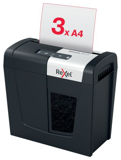 Η σειρά τεμαχιστών Secure Whisper-Shred™ της Rexel είναι ιδανική για τον τεμαχισμό προσωπικών εγγράφων και εμπιστευτικών πληροφοριών στο σπίτι. Το μοντέλο Secure MC3 καταστρέφει ταυτόχρονα - μετά από χειροκίνητη τροφοδοσία μέσω της υποδοχής του τροφοδότη - έως και 3 φύλλα χαρτιού A4 (80 gsm), κόβοντάς τα σε μικροκόμματα διαστάσεων 2 x 15 mm, γεγονός που εξασφαλίζει επίπεδο ασφάλειας P-5. Μικρό και συμπαγές - ιδανικό για χρήση στο σπίτι και στο γραφείο στο σπίτι. Είναι επίσης τέλειος ως προσωπικός καταστροφέας σε γραφεία, καθώς χωράει άνετα κάτω από το γραφείο και εξασφαλίζει αθόρυβη λειτουργία. Το δοχείο των 10 λίτρων επιτρέπει λιγότερο συχνό άδειασμα των αποκομμάτων. Ο καταστροφέας προορίζεται για περιστασιακή ή μέτρια χρήση.