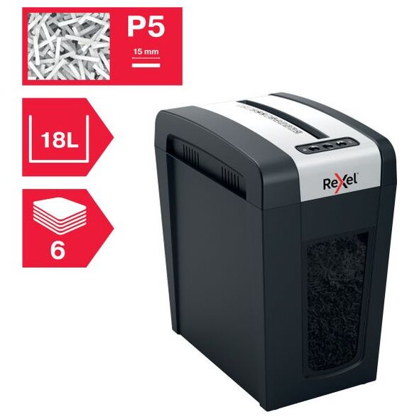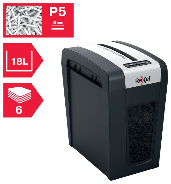 Η σειρά τεμαχιστών Secure Whisper-Shred™ της Rexel είναι ιδανική για τον τεμαχισμό προσωπικών εγγράφων και εμπιστευτικών πληροφοριών στο σπίτι. Το μοντέλο Secure MC6-SL καταστρέφει ταυτόχρονα - μετά από χειροκίνητη τροφοδοσία μέσω της υποδοχής του τροφοδότη - έως και 6 φύλλα χαρτιού A4 (80 gsm), κόβοντάς τα σε μικροτεμάχια 2 x 15 mm, γεγονός που εξασφαλίζει επίπεδο ασφάλειας P-5. Λεπτό και συμπαγές - ιδανικό για χρήση στο σπίτι και στο γραφείο στο σπίτι. Είναι επίσης τέλειος ως προσωπικός καταστροφέας σε γραφεία, καθώς χωράει άνετα κάτω από το γραφείο και εξασφαλίζει αθόρυβη λειτουργία. Το δοχείο των 18 λίτρων επιτρέπει το λιγότερο συχνό άδειασμα των αποκομμάτων και προορίζεται για περιστασιακή ή μέτρια χρήση.