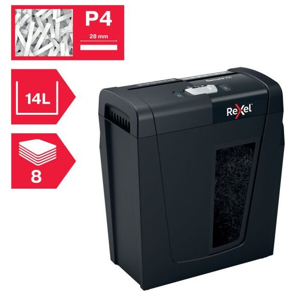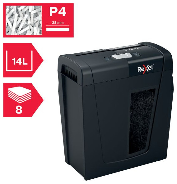 Η σειρά τεμαχιστών Secure της Rexel είναι ιδανική για τον τεμαχισμό προσωπικών εγγράφων και εμπιστευτικών πληροφοριών στο σπίτι. Το μοντέλο Secure S8 καταστρέφει ταυτόχρονα - μετά από χειροκίνητη τροφοδοσία μέσω της υποδοχής τροφοδοσίας - έως και 8 φύλλα χαρτιού A4 (80 gsm), κόβοντάς τα σε κομφετί 4 x 40 mm, γεγονός που εξασφαλίζει επίπεδο ασφάλειας P-4. Αυτός ο μικρός, συμπαγής καταστροφέας είναι ιδανικός για χρήση στο σπίτι και στο γραφείο. Είναι επίσης τέλειος ως προσωπικός καταστροφέας σε γραφεία, καθώς χωράει άνετα κάτω από το γραφείο. Το δοχείο των 14 λίτρων επιτρέπει λιγότερο συχνό άδειασμα των κομματιών. Ο καταστροφέας προορίζεται για περιστασιακή ή μέτρια χρήση.