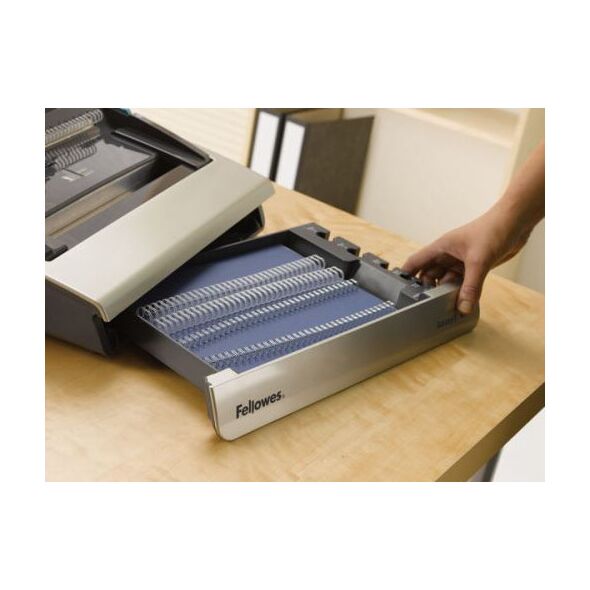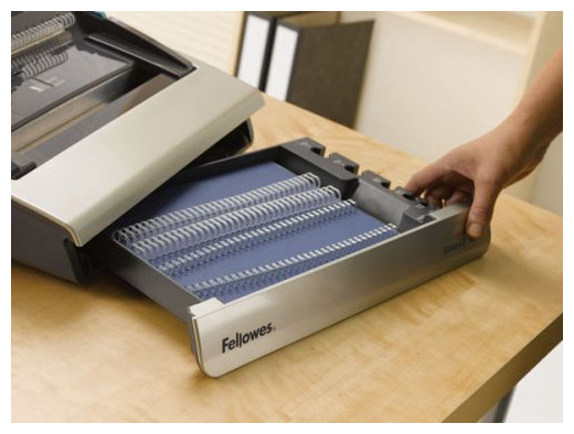 Ένα ειδικό συρτάρι για την αποθήκευση ράχης και καλύμματα με πατενταρισμένο σύστημα μέτρησης του πάχους των εγγράφων και επιλογής της κατάλληλης ράχης ενσωματωμένης στο πλάι.