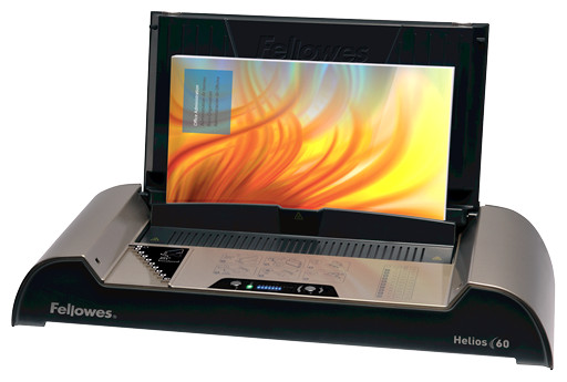 Η μηχανή βιβλιοδεσίας Fellowes Helios 60 έχει σχεδιαστεί εργονομικά. Το κύριο πλεονέκτημά του είναι η δυνατότητα δέσμευσης εγγράφων με πάχος έως και 600 φύλλα A4 (80g). Για να γίνει αυτό δυνατό, είναι απαραίτητο να χρησιμοποιήσετε μια ράχη με διάμετρο 60 mm. Για να διευκολυνθεί η επιλογή βιβλιοδεσίας, το μηχάνημα διαθέτει μετρητή πάχους για τη στοίβα των φύλλων και το κάλυμμα, ώστε τα έγγραφά σας να φαίνονται πάντα αισθητικά.