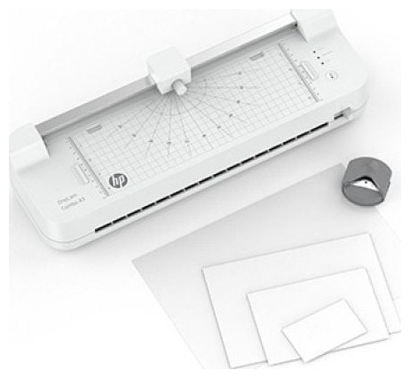 ο πλαστικοποιητής έχει ενσωματωμένο τρίμερ και το σετ περιλαμβάνει ένα γωνιακό στρογγυλό και 15 φύλλα πλαστικοποίησης (3xA4, 4xA5, 4xA6, 4xB-CARD)