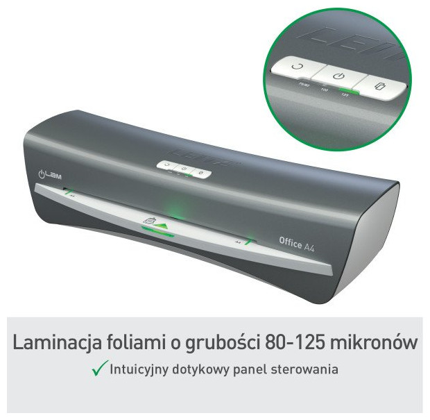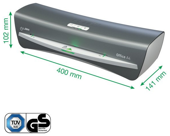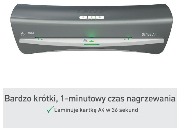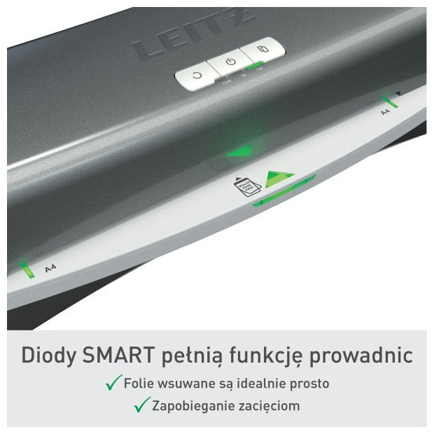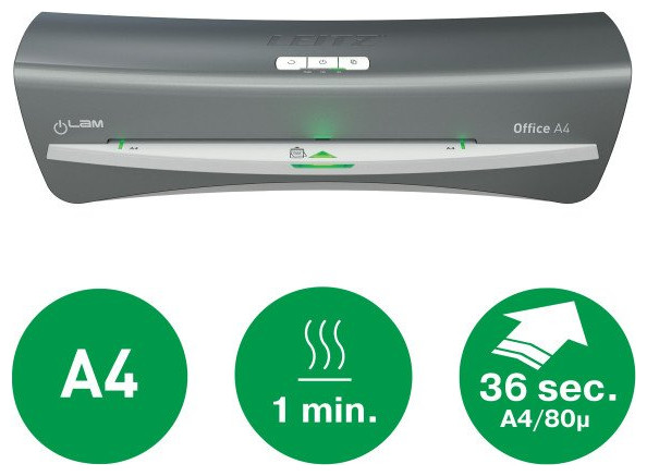 Χωρίς προβλήματα, πλαστικοποίηση υψηλής ποιότητας, χωρίς πολύπλοκες ρυθμίσεις. Ο πολύ σύντομος χρόνος προθέρμανσης το καθιστά ιδανική συσκευή για πλαστικοποίηση μικρών ποσοτήτων εγγράφων αποθηκευμένη χαμηλή κατανάλωση ενέργειας, απενεργοποιείται αυτόματα μετά από 30 λεπτά. δεν χρησιμοποιείται Κατάλληλο για φύλλα με πάχος 80 έως 125 microns Η πλαστικοποίηση ενός εγγράφου με πάχος 80 microns διαρκεί περίπου 45 δευτερόλεπτα Φωτεινό και ηχητικό σήμα LED που ενημερώνει για ετοιμότητα για εργασία Περιλαμβάνει δωρεάν πακέτο αλουμινίου για εκκινητές 2 χρόνια εγγύηση, GS , πιστοποιητικά TUV και CE Συνιστάται η χρήση φύλλου Leitz UDT