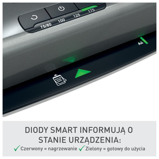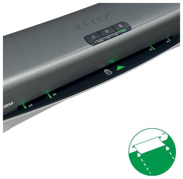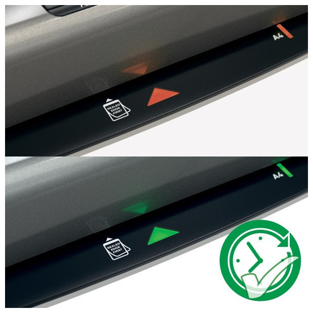 Υποδεικνύουν τη σωστή κατεύθυνση εισαγωγής του φύλλου στον πλαστικοποιητή και εξαφανίζονται μετά τη σωστή πλαστικοποίηση.{Speed control} όχι. {Display} αρ. {Μορφή} A4 . {Χρώμα} Ασημί . {Τύποι πλαστικοποίησης} Ζεστή πλαστικοποίηση. {Σήμα ετοιμότητας} ναι . {Σύστημα πλαστικοποίησης} 4 ρολά. {Χρόνος θέρμανσης [λεπτά]} 3 . {Αυτόματη απενεργοποίηση} ναι. {Μέγιστο πάχος φύλλου [μικρόμετρο]} 250 . {Μέγιστο πλάτος πλαστικοποίησης [mm]} 320 . {Σύστημα πλαστικοποίησης} Τεχνολογία θερμού κυλίνδρου. {Other} Χρόνος προθέρμανσης: 3 λεπτά. {Ύψος [cm]} 11 . {Πλάτος [cm]} 49,8 . {Βάθος [cm]} 22,1 . {Βάρος [kg]} 4,55 . {Ταχύτητα πλαστικοποίησης [cm/min]} 50