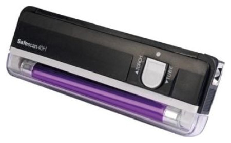 Το Safescan 40H είναι ένας εύχρηστος, συμπαγής, φορητός ελεγκτής ανίχνευσης απομιμήσεων που μπορείτε να έχετε μαζί σας όπου κι αν ταξιδεύετε. Η λάμπα UV ελέγχει την υπεριώδη προστασία τραπεζογραμματίων, ταυτοτήτων, πιστωτικών καρτών και όλων των άλλων επίσημων εγγράφων. Ο ενσωματωμένος φακός σάς επιτρέπει επίσης να ελέγχετε το υδατογράφημα και το νήμα ασφαλείας Perfect σε συνδυασμό με τον δείκτη UV Safescan 20, ο οποίος σας επιτρέπει να μαρκάρετε και να ελέγχετε όλα τα προσωπικά και επαγγελματικά σας αντικείμενα.