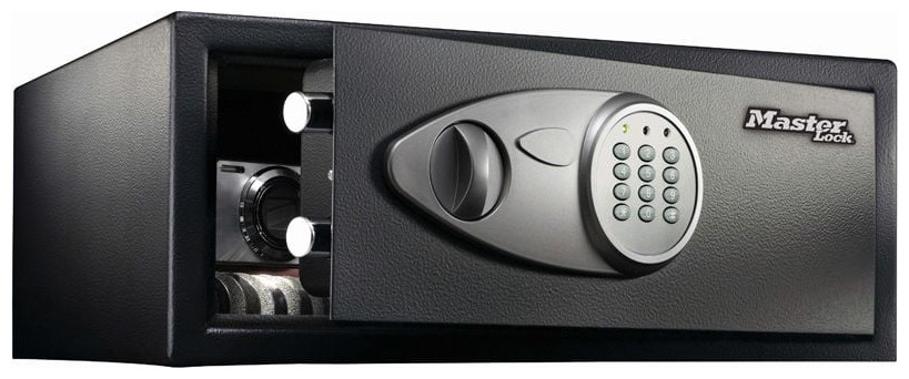 MASTER LOCK X075ML. Kolor produktu: Czarny, Szary, Typ zamka: Zamek szyfrowy, Klucz, Pojemność: 22,1 l. Rodzaj zasilania: Bateria. Szerokość produktu: 430 mm, Głębokość produktu: 370 mm, Wysokość produktu: 180 mm
