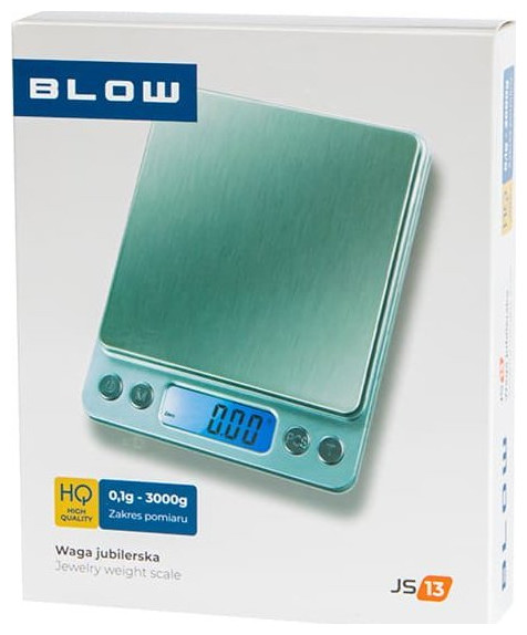 Specyfikacja:- Zakres pomiaru: do 3000g- Dokładność pomiaru: 0.1g - Jednostki miary: g / oz / ozt / dwz / ct / gn / tl - Materiał szali: stal- Wyświetlacz: LCD, niebieskie podświetlenie - Zasilanie: 2x bateria AAA (brak w zestawie) - Wymiary wagi (dł/szer/grub): 12,5 x 10,5 x 1,8 cm - Wymiary szalki: 10 x 10 cm - Waga własna produktu: 300g Nowoczesna i przestronna waga jubilerska, która jest niezastąpionym urządzeniem w m.in. aptece, laboratorium, lombardzie czy zielarstwie. Wykorzystane wysokiej jakości materiały gwarantują dokładność do aż 0,1g. Dodatkowo wyposażona została w funkcję "PCS" dzięki której mamy możliwość liczenia sztuk. A dzięki dużemu, czytelnemu i podświetlanemu na niebiesko wyświetlaczowi bez najmniejszych kłopotów odczytany wyniki, w przypadku bezczynności dłużej niż 60 sekund waga automatycznie się wyłączy - pozwoli to na zaoszczędzenie energii.
