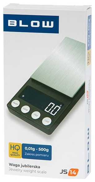 Specyfikacja:- Zakres pomiaru: do 500g- Dokładność pomiaru: 0.01g - Jednostki miary: g / oz / ozt / dwt / ct / gn - Materiał szali: stal- Wyświetlacz: LCD, podświetlenie w negatywie - Zasilanie: 2x bateria AAA (brak w zestawie) - Wymiary wagi: 13,9 x 7,1 x 2,5 cm - Wymiary szalki: 85 x 70 mm - Dodatkowe: funkcja tary, zliczania, antypoślizgowe stopki, automatyczny wyłącznik