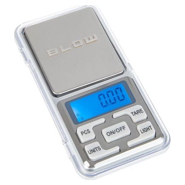 Specyfikacja: - Zakres pomiaru: do 500g- Dokładność pomiaru: 0.01g - Jednostki miary: g / oz / ozt / dwz / ct / gn /- Materiał szali: stal- Wyświetlacz: LCD, niebieskie podświetlenie - Zasilanie: 2x bateria AAA (brak w zestawie) - Wymiary wagi (dł/szer/grub): 122 x 64 x 20 mm - Wymiary szalki: 50 x 55 mm - Dodatkowe: funkcja tary, zliczania, antypoślizgowe stopki, automatyczny wyłącznik