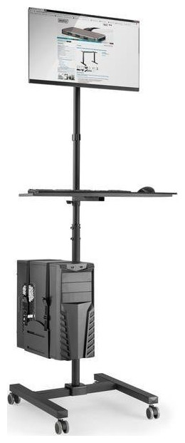 Ο φορητός σταθμός εργασίας παρέχει αρκετό χώρο για οθόνη, πληκτρολόγιο/ποντίκι και υπολογιστή με ευέλικτη ρύθμιση του ύψους εργασίας. Χάρη στους 4 περιστρεφόμενους τροχούς, μπορείτε να μετακινήσετε το σταθμό εργασίας όπου τον χρειάζεστε. Ο σταθμός είναι ιδανικός για χώρους εργασίας που αλλάζουν συνεχώς όπως εργαστήρια, ιατρεία, αποθήκες, εργοστάσια παραγωγής κ.λπ. Η βάση στήριξης Η/Υ έχει μεταβλητό πλάτος και μπορεί να προσαρμοστεί σε οποιοδήποτε μοντέλο.{Type} Σταθμός εργασίας . {Χρώμα}Μαύρο