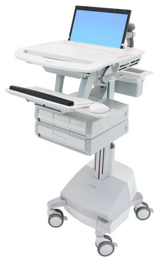 Wózek pozwala na szybkie przewożenie komputera oraz akcesoriów sanitarnych. 4 szuflady.