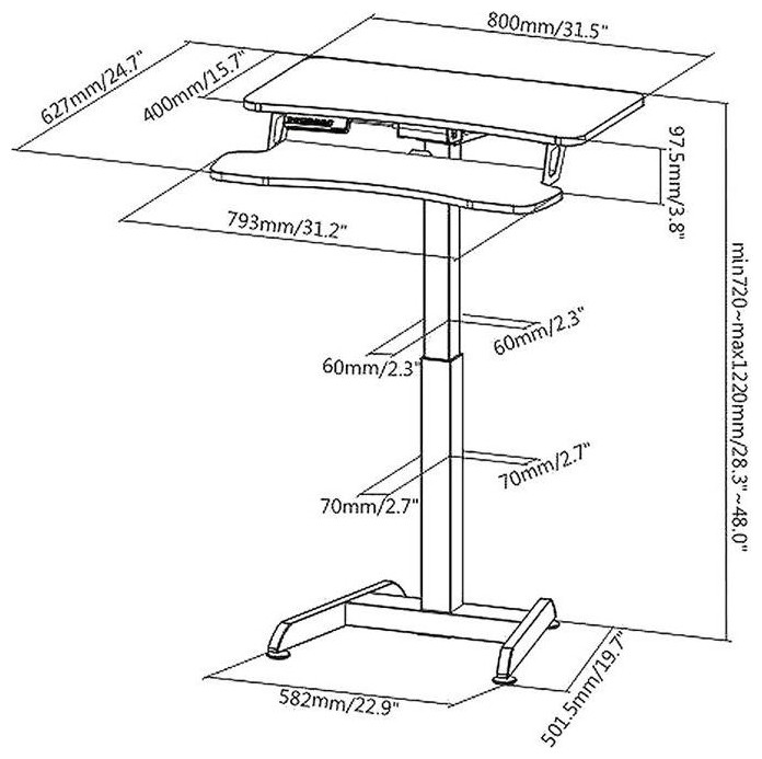 Ύψος γραφείου: 72 - 122 cm (ρυθμιζόμενο)