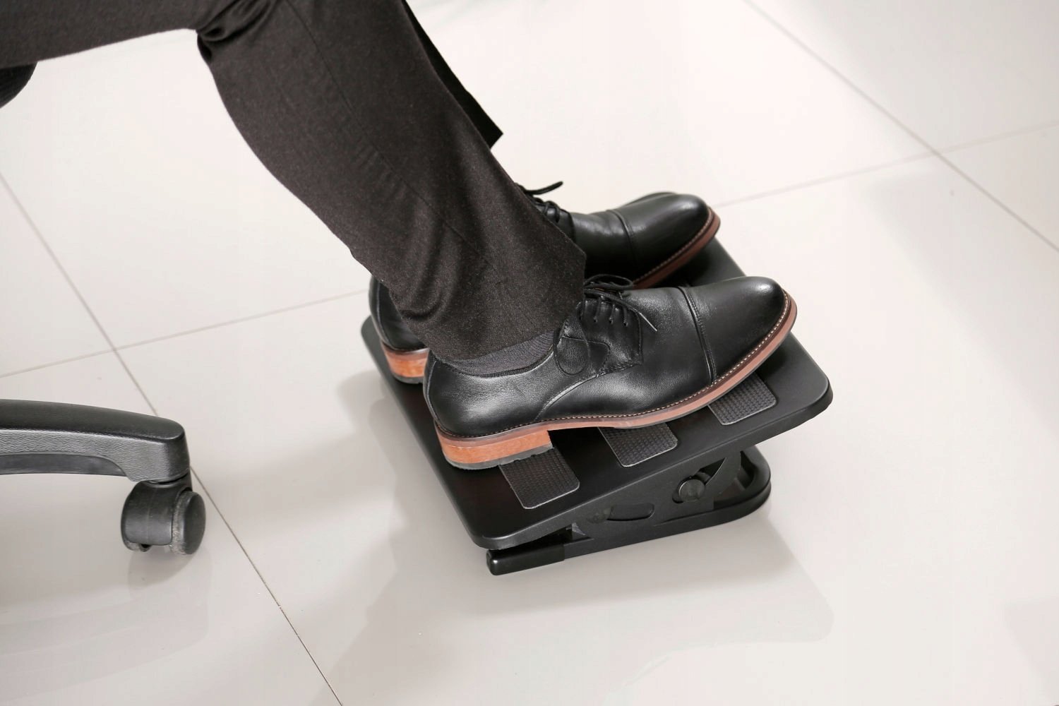 Wielogodzinna praca przy komputerze może skutecznie zaburzać prawidłowy przepływ krwi oraz zachowanie prawidłowego kąta 90 stopni między kręgosłupem a nogami. Dzięki Mozos FS4 zapewniamy wygodne poparcie dla stóp i zmniejszenie napięcia. Regulacja pochylenia umożliwia znalezienie najlepszej, ergonomicznej pozycji i zminimalizowanie uczucia zmęczenia i przeciążenia. Stalowa konstrukcja ergonomicznego podnóżka z regulacją nachylenia została zaprojektowana w taki sposób, aby zapewnić maksymalne korzyści pracownikom biurowym i osobom o niższym wzroście. Zapobiegaj sztywności mięśni nóg a dzięki temu pracuj efektywniej, zmniejszając przeciążenia lędźwiowej części kręgosłupa.