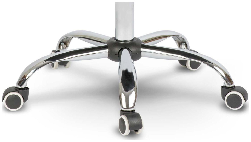 Pięcionoga podstawa fotela została wyposażona w podwójne kółka. Pozwala to szybko i swobodnie manewrować bez konieczności ciągłego wstawania i obracania się.