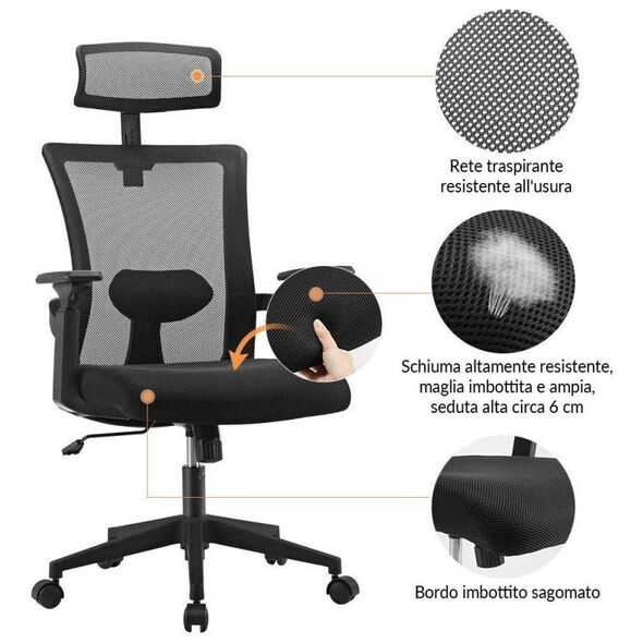 Καρέκλα γραφείου Techly Τεχνικά περιστρεφόμενη καρέκλα γραφείου, αεριζόμενη πλάτη, προσκέφαλο 8507730 8051128105711