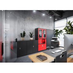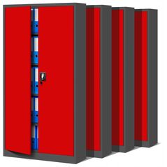 Σετ 4x μεταλλική ντουλάπα γραφείου για αρχεία JAN, 900 x 1850 x 400 mm, ανθρακί-κόκκινη