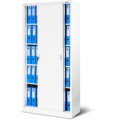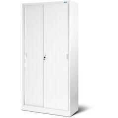 Μεταλλική ντουλάπα γραφείου με συρόμενες πόρτες KUBA, 900 x 1850 x 400 mm, λευκή
