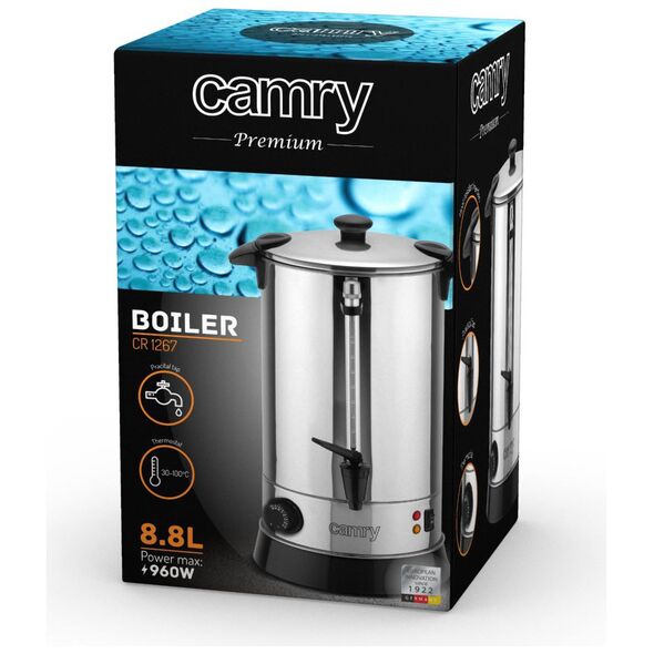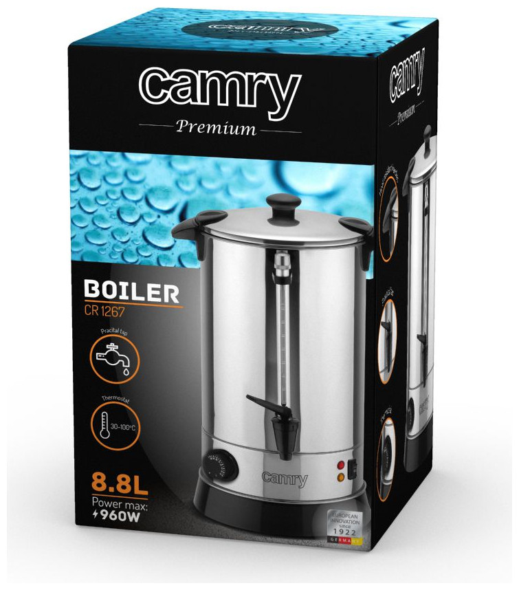Η κουζίνα CR 1267 από ανοξείδωτο ατσάλι σας επιτρέπει να θερμαίνετε το νερό και να διατηρείτε τη θερμοκρασία του. Απαραίτητο κατά τη διάρκεια συνεδρίων για τη διοργάνωση διαλειμμάτων για καφέ, καθώς και για διάφορα είδη επαγγελματικών, επιστημονικών και κοινωνικών συναντήσεων. Χάρη στην κινητικότητά του, είναι τέλειο ως εξοπλισμός για εταιρείες που προετοιμάζουν εκδηλώσεις. Η κουζίνα Camry είναι απλή και βολική στη χρήση και επιπλέον διασφαλίζει την ασφάλεια χρήσης (μη θερμαινόμενες λαβές και βρύση).