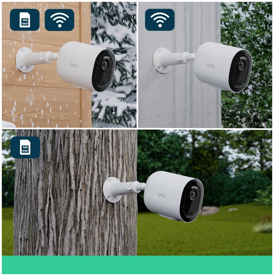 Arlo Go 2. Model: Kamera bezpieczeństwa IP, Przeznaczenie: Zewnętrzna, Technologia łączności: Bezprzewodowy. Typ mocowania: Sufit / Ściana, Kolor produktu: Biały, Układ: Pocisk. Kąt pola widzenia (FOV): 130°. Obsługiwane tryby wideo (aparat panoramiczny): 1080p. Cyfrowe zbliżenie: 12x