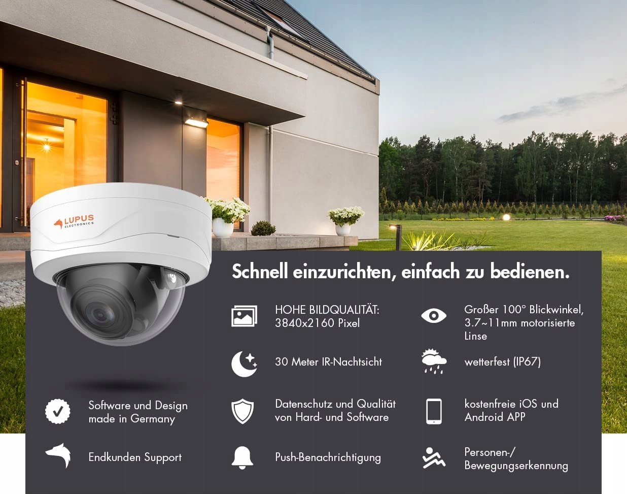 Lupus Electronics LE224 PoE IP Security Camera Indoor and Outdoor Dome 3840 x 2160 pixels Οροφή/τοίχο Κατασκευαστής: Lupus ElectronicsLupus Electronics LE224 PoE είναι μια κάμερα παρακολούθησης IP με υψηλή ανάλυση 3840 x 2160 pixel. Χάρη στην τεχνολογία Power over Ethernet, η εγκατάσταση είναι απλή και γρήγορη Η λειτουργία νυχτερινής όρασης επιτρέπει την παρακολούθηση στο σκοτάδι και η ευρεία γωνία θέασης των 112 μοιρών σας επιτρέπει να παρατηρήσετε μεγαλύτερη περιοχή. Η Lupus Electronics LE224 PoE είναι μια ιδανική κάμερα IP για απαιτητικούς χρήστες που αναζητούν την υψηλότερη ποιότητα εικόνας και εύκολη εγκατάσταση Η LUPUS LE202 από τον Γερμανό κατασκευαστή LUPUS Electronics εγκαθίσταται εν ριπή οφθαλμού μέσω της εφαρμογής iOS ή Android. Τεχνολογία συνδεσιμότητας: Ενσύρματο στοιχείο Διάμετρος: χιλιοστά Συστατικά που περιλαμβάνονται: Lupus Electronics LE224 PoE; αριθμός καμερών: 1; Y Γωνία θέασης: 112 μοίρες Όνομα μοντέλου: LE224 Μάρκα PoE: Lupus Electronics Τύπος ελέγχου: Έλεγχος εφαρμογής Γενική λέξη-κλειδί: Lupus Electronics; 10224; LE224 PoE Αριθμός ειδών: 1 Τύπος εγκατάστασης: Αριθμός ανταλλακτικού οροφής/τοίχου: 10224 Αληθινή γωνία θέασης: 112 Αποτελεσματική ανάλυση βίντεο: 2160 Χρώμα: Λευκό Τύπος αντικειμένου Όνομα: IP Surveillance Camera Μορφή λήψης βίντεο: AVI Αντικειμένου Βάρος συσκευασίας: Μέγιστο 1 kg. : 30 μέτρα Κατασκευαστής: Τύπος ελεγκτή Lupus Electronics: Εσωτερική χρήση iOS σε εξωτερικό χώρο: Ανάλυση λήψης βίντεο σε εξωτερικό χώρο: Αριθμός μοντέλου 4k: 10224 προμηθευτής δήλωσε dg hz κανονισμός: non_applicable ειδική λειτουργία: Όνομα στοιχείου νυχτερινής όρασης: Lupus Electronics LE224 PoE IP κάμερα ασφαλείας Dome 3840 x 2160 pixels Επίπεδο διεθνούς προστασίας οροφής/τοίχου: IP67 ενεργή ανάλυση φωτογραφίας: 8 megapixel πηγή ενέργειας Τάση: 12 βολτ Τύπος τοποθέτησης: Τοποθέτηση Λόγος διαστάσεων οροφής: Θόλος{Πιστοποίηση IP} IP67 . {Πιστοποίηση IP} IP67 . {Πιστοποίηση IP} IP67 . {Πιστοποίηση IP} IP67 . {Πιστοποίηση IP} IP67 . {Type} Συμπαγής . {Type} Συμπαγής . {Type} Συμπαγής . {Type} Συμπαγής . {Type}Συμπαγές