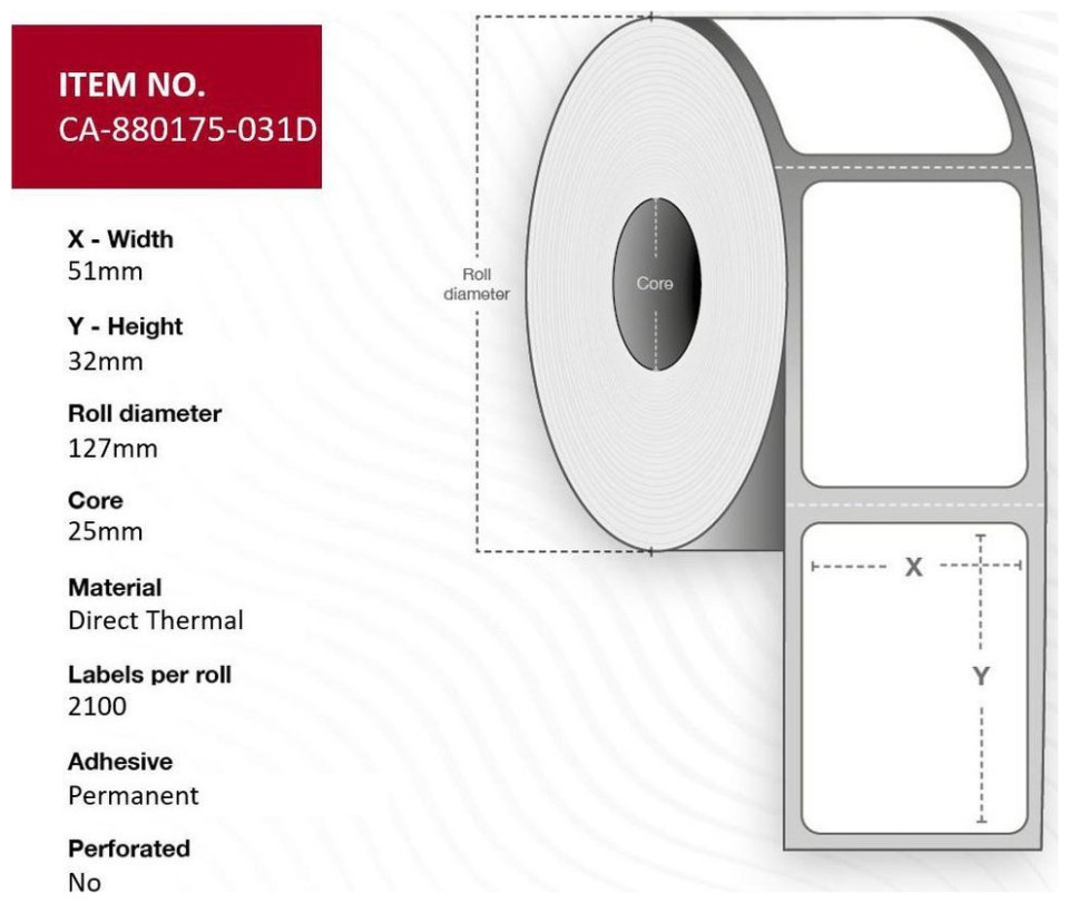 Ετικέτα 51 x 32mm, Πυρήνας 25mm,
