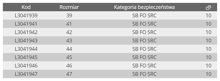 ΥΛΙΚΟ: Επάνω μέρος: δέρμα. Επένδυση: πλεκτό πλέγμα. Επένδυση: αντικαταστάσιμη. Σόλα: πολυουρεθάνη μονής πυκνότητας με αντιολισθητικές ιδιότητες (υπόστρωμα από χάλυβα και κεραμικό), ανθεκτικό στο πετρέλαιο ντίζελ, βαθιά προστασία που εξασφαλίζει υψηλή σταθερότητα παπουτσιών