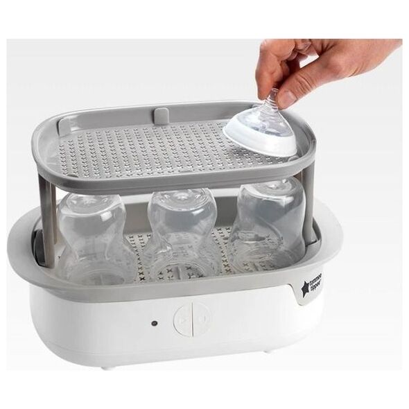 Μεγάλη χωρητικότητα: Ο αποστειρωτής χωράει έως και 6 φιάλες Tommee Tippee, καθώς και θηλές και καπάκια μπουκαλιών.