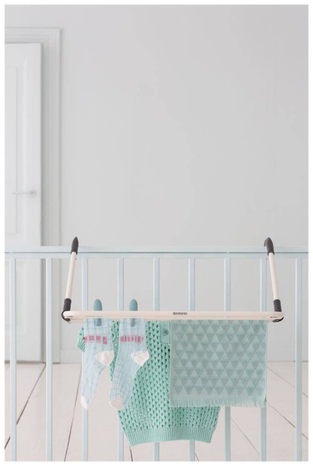 Estetyczna a także solidna suszarka marki Brabantia została wykonana z materiałów najwyższej jakości. Suszarkę można powiesić na drzwiach łazienki ( o grubości do 11cm), na grzejniku lub balustradzie, a to za sprawą „głębokich uchwytów”. Wyposażona w system Smart Lock zapamiętuje dotychczasowe ustawienie suszarki ułatwiając użytkowanie. Uchwyty pokryte są delikatnym materiałem , który nie rysuje powierzchni.Sześć rzędów o łącznej powierzchni suszenia 4,5 metrów sprawia że możemy wywiesić niewielkie pranie. Produkty marki Brabantia posiadają 5 letnią gwarancje.