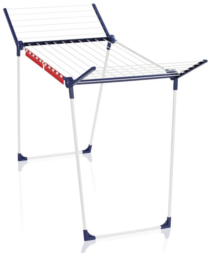 Το στεγνωτήριο Pegasus M Classic έχει όλα όσα χρειάζεται ένα κινητό στεγνωτήριο. Χάρη στα παράλληλα πόδια, στέκεται πολύ σταθερό και ασφαλές, τόσο σε εσωτερικούς όσο και σε εξωτερικούς χώρους. Συνολικά, το μήκος του φτάνει τα 18 μέτρα, γεγονός που παρέχει χώρο για σχεδόν δύο περιεχόμενα πλυντηρίου. Μακριά αντικείμενα όπως πετσέτες ή παντελόνια μπορούν να στεγνώσουν στα πλαϊνά αναδιπλούμενα φτερά, όπου, χάρη στο ύψος των 105 cm, τίποτα δεν σέρνεται στο έδαφος.