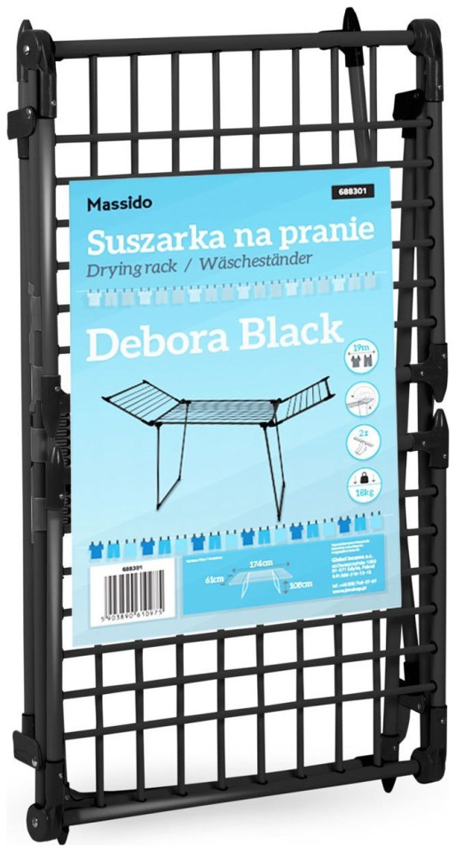 Απλώστρα ρούχων Massido Απλώστρα ρούχων όρθια πτυσσόμενη Debora μαύρη 19 μ
