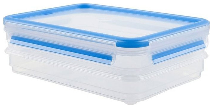 Emsa CLIP & CLOSE cold cuts box system 1.0 liter, 4-piece, can (transparent/blue, rectangular)