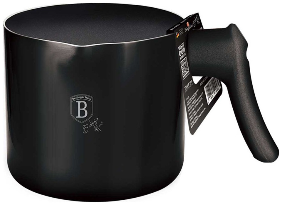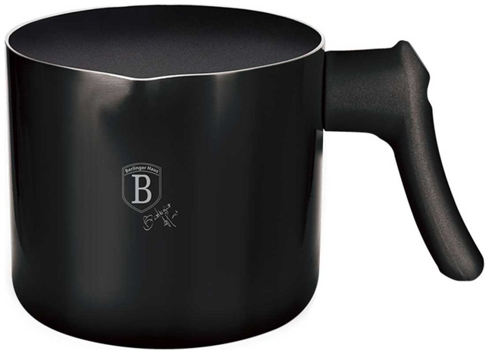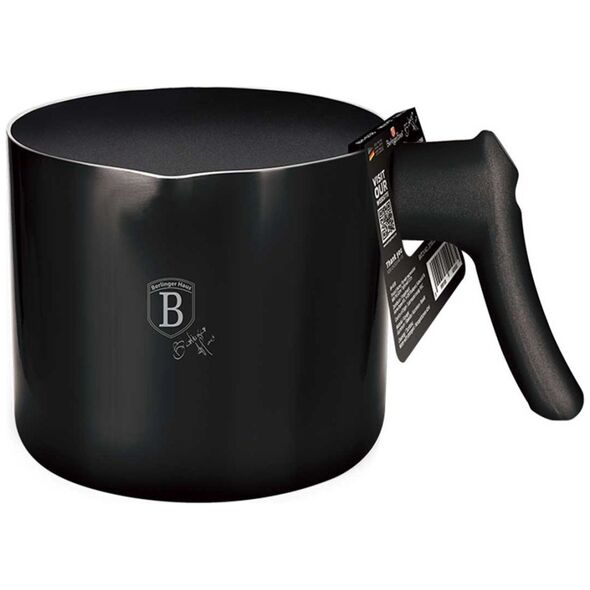Garnek do mleka 1.2L z wewnętrzną powłoką granitową BERLINGER HAUS z seriiBlack Rose METALLIC LINE.Garnki i akcesoria z serii METALLIC firmy BERLINGER HAUS wykonane są z wysokiej klasy kutego aluminium pokrytego wewnątrz potrójną powłoką granitową (marble) o bardzo wysokim współczynniku twardości. Powłoka zewnętrzna występuje w kilku wersjach kolorystycznych o charakterystycznym metalicznym połysku. Te atrakcyjne i modne naczynia wyposażone są standardowo w uchwyty typu SOFT TOUCH (silikon handle). System TURBO INDUCTION (bardzo szybko nagrzewają się) pozwala zaoszczędzić nawet 35% energii. Cechy:Potrójna powłokagranitowa anty-przywierająca w kolorze czarnym.Materiał: wysokiej jakości odlewanealuminium.Soft-Touch Handle: silikonowy uchwyt.System TURBO INDUCTION (bardzo szybko nagrzewają się) 35% oszczędność enegrii.Możliwość mycia w zmywarce.Do kuchenek: gazowej, elektrycznej, ceramicznej, halogenowej.Kolor:CzarnymetalicznyRozmiar:12 x 11 cm (~1.2L) Powłoka granitowajest to powłoka teflonowa wzbogacona miałem granitowym, dzięki czemu uzyskuje większą twardość. Jest twardsza niż teflon, ale przy tym zachowuje jego zalety: nie przypala, dobrze rozprowadza ciepło. Łączy zalety naczyń żeliwnych i teflonowych. Ma wszelkie zalety teflonu, ale jest bardziej odporna na uszkodzenia, przewyższana w tym nawet powłoki ceramiczne. Granitowa powłoka sprawia, że naczynia są wyjątkowo odporne na wszelkie zarysowania i trwałe. Ten typ garnków i patelni pozwala również na smażenie przy użyciu minimalnej ilości tłuszczu, ponieważ naczynie rozgrzewa się podobnie do kamienia i oddaje ciepło całą swą powierzchnią.