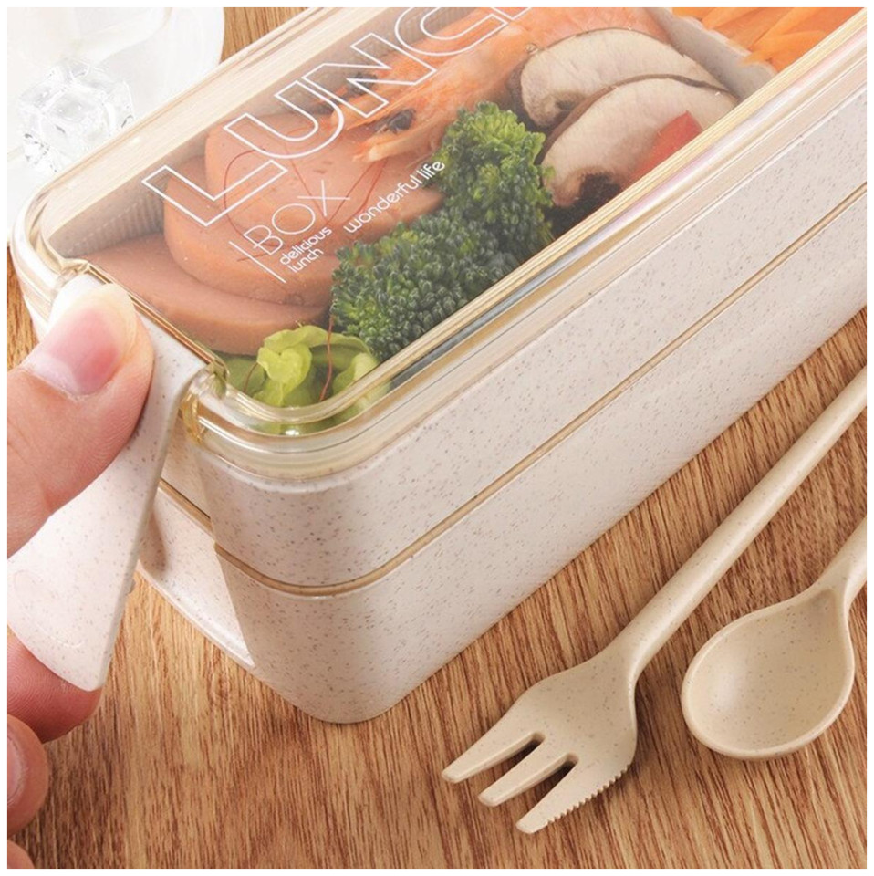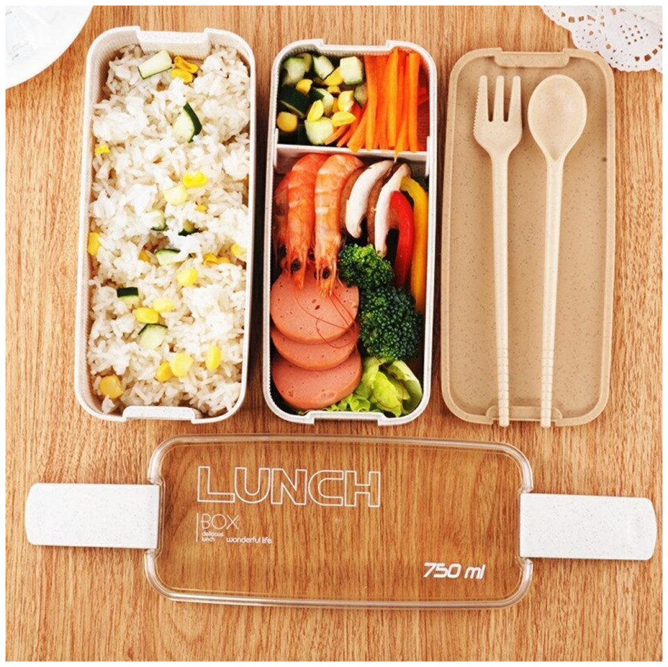 Solidny pojemnik na żywność o pojemności 750 ml. Termos obiadowy (lunch box) doskonale nadaje się do zabierania posiłków do pracy i szkoły! Posiada wygodną rączkę do przenoszenia, solidne klipsy uniemożliwiające rozłączenie się elementów i powierzchnię dobrze utrzymującą ciepło!Cechy produktu:Dwukomorowy pojemnik na żywność. Doskonale nadaje się do pracy lub szkoły.Wykonany z wysokiej jakości, bezpiecznego tworzywa sztucznego - materiały użyte do produkcji pojemnika są nietoksyczne, smakowo obojętne i bezpieczne.Wyposażony w pokrywę oraz wygodny uchwyt do przenoszenia. Górna pokrywa z uszczelką zamykana jest na 2 boczne zatrzaski, które podtrzymują całość konstrukcji.Możliwość korzystania z pojemnika w kuchence mikrofalowej.Przy potrawach płynnych należy go przenosić w pozycji pionowej!Przeznaczony zarówno do produktów gorących jak i zimnych.Bardzo łatwy w czyszczeniu.W zestawie również łyżeczka oraz widelec.Specyfikacja:Materiał: tworzywo sztuczne (PP)Pojemność: 0,75 LSzerokość: 17,5 cmWysokość: 8 cmGłębokość: 7,5 cmKolor: beżowyZapraszamy do złożenia zamówienia!