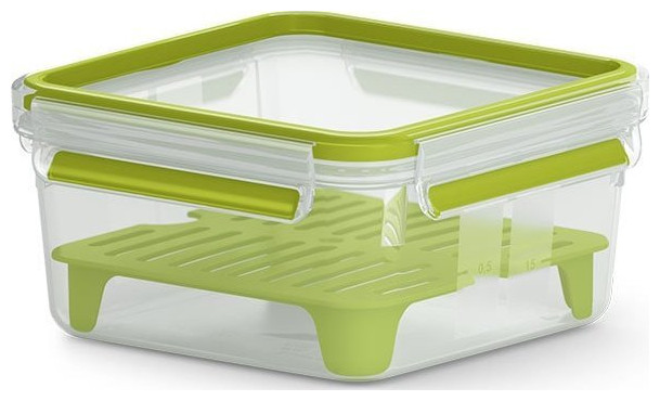 Υλικό: πλαστικό Χρώμα: διαφανές/πράσινο Χωρητικότητα: 1,3 λίτρα Ειδικά χαρακτηριστικά: Χωρίς BPA, πλυντήριο πιάτων, φούρνο μικροκυμάτων και καταψύκτη Διαστάσεις (ΥxΠxΒ): 8,4x16,6x16,6cm{Χωρητικότητα [ml]} 1300