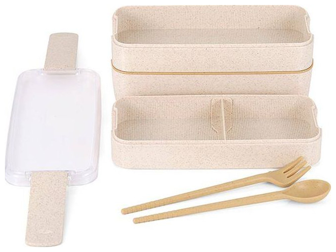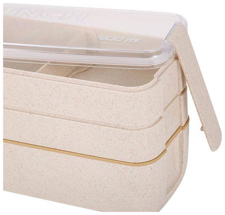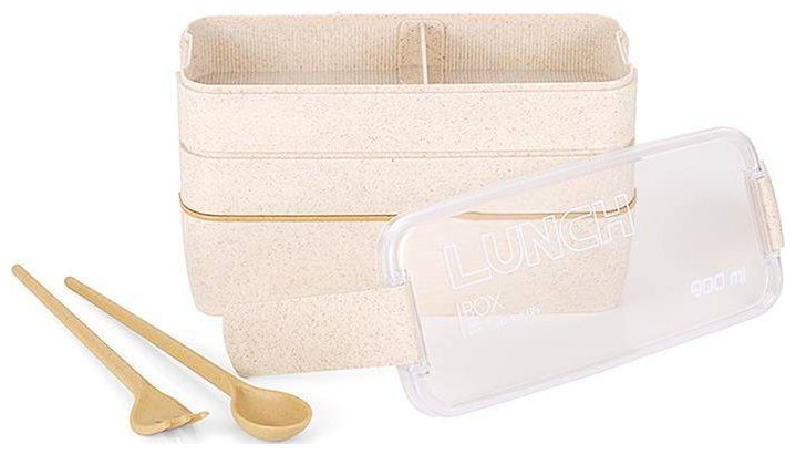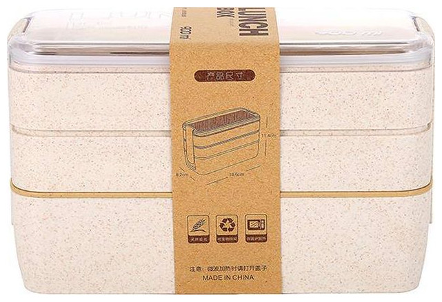 Solidny pojemnik na żywność o pojemności 900 ml. Termos obiadowy (lunch box) doskonale nadaje się do zabierania posiłków do pracy i szkoły! Posiada wygodną rączkę do przenoszenia, solidne klipsy uniemożliwiające rozłączenie się elementów i powierzchnię dobrze utrzymującą ciepło!Cechy produktu:Produkt fabrycznie nowy, wysokiej jakości.Trzykomorowy pojemnik na żywność! Doskonale nadaje się do pracy lub szkoły.Wykonany z wysokiej jakości, bezpiecznego tworzywa sztucznego - materiały użyte do produkcji pojemnika są nietoksyczne, smakowo obojętne i bezpieczne.Wyposażony w pokrywę oraz wygodny uchwyt do przenoszenia. Górna pokrywa z uszczelką zamykana jest na 2 boczne zatrzaski, które podtrzymują całość konstrukcji (wszystkie 3 pięterka).Możliwość korzystania z pojemnika w kuchence mikrofalowej.Przy potrawach płynnych należy go przenosić w pozycji pionowej!Przeznaczony zarówno do produktów gorących jak i zimnych.Bardzo łatwy w czyszczeniu.W zestawie również łyżeczka oraz widelec.Specyfikacja:Materiał: tworzywo sztuczne (PP)Pojemność: 0,9 LSzerokość: 17,5 cmWysokość: 11,5 cmGłębokość: 7,5 cmKolor: beżowyZapraszamy do złożenia zamówienia!