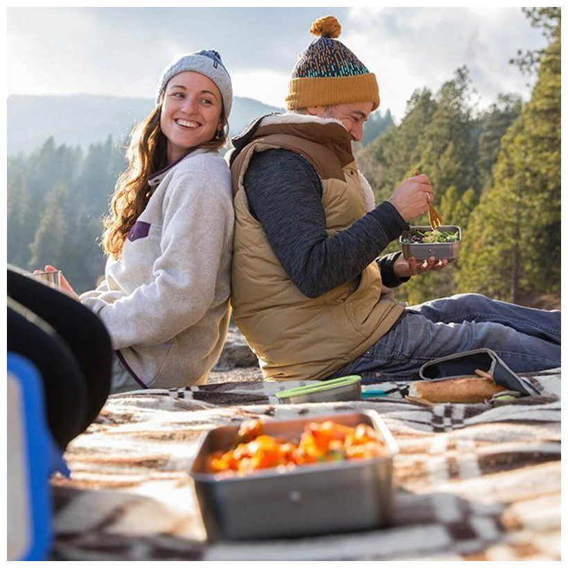 Όταν πλησιάζει μια περιπέτεια ή είναι απλώς ώρα για δουλειά, είναι καλύτερο να συσκευάσετε το γεύμα σας σε ένα αεροστεγές δοχείο. Ένα μεγάλο κουτί φαγητού με χωρητικότητα πάνω από ένα λίτρο σας επιτρέπει να αποθηκεύετε άνετα ζεστά τρόφιμα, καθώς και σνακ σε μορφή φρούτων ή σάντουιτς για όλη την οικογένεια. Το εσωτερικό του μοντέλου από χάλυβα είναι ηλεκτρολυτικά γυαλισμένο, γεγονός που κάνει τον καθαρισμό του κουτιού πολύ πιο εύκολο. Αξίζει να σημειωθεί ότι το δοχείο μπορεί να πλυθεί στο πλυντήριο πιάτων. Το καπάκι, κλειστό με ισχυρά μάνδαλα κουμπώματος και κλειδώματος, έχει ασύμμετρη δομή - μια από τις γωνίες του καπακιού είναι πιο σιλικόνης από τις άλλες, ώστε να μπορείτε να το διπλώσετε γρήγορα και να κρυώσετε το γεύμα.