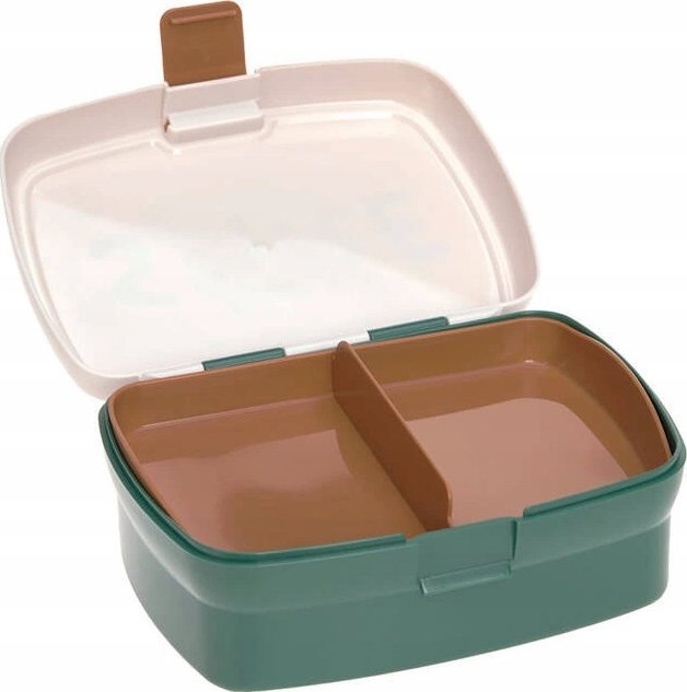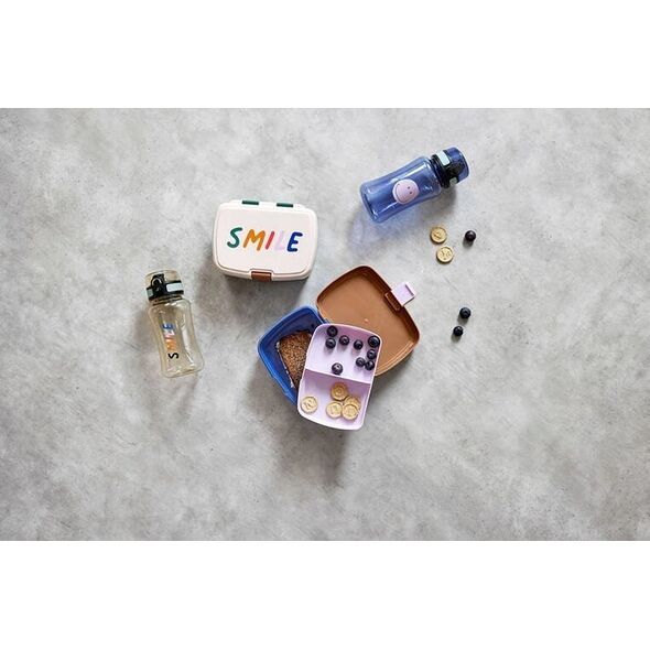 Bidon 460 ml + Lunchbox - zestaw lunchowy Little Gang dla dzieci, LassigSeria: Little Gang Liczba elementów w zestawie: 2 Certyfikaty i Atesty: CE Przyda się do przedszkola lub szkoły, podczas spacerów, treningów i wycieczek. Pudełko jest sprytnie podzielone na część główną na dole, która pomieści np. kanapki oraz wyjmowany dwudzielny pojemnik na przekąski, np. pokrojone owoce czy wafelki, który można umieścić w górnej przestrzeni. Box można wygodnie zamknąć i otworzyć za pomocą szerokiego klipsa, który nie otworzy się sam. Nakrętka z wygodnym sportowym ustnikiem ma zintegrowaną przeźroczystą osłonę na klik, która zapobiega przypadkowemu rozlaniu się napoju oraz gwarantuje zachowanie higieny oraz antypoślizgowy silikonowy pas pośrodku, ułatwiający jej odkręcanie. Pojemniki są lekkie, solidne i szczelne. Mają ergonomiczny kształt i mieszczą się nawet do małego plecaka czy torby. Lunchbox ma głęboki zielony kolor i mleczno-białą pokrywkę z kolorowym napisem SMILE. Butleka jest mleczna i ma taki sam napis. Produkt jest częścią większej kolekcji.✓ jest nowy, oryginalny ✓ pochodzi z oficjalnej, polskiej dystrybucji