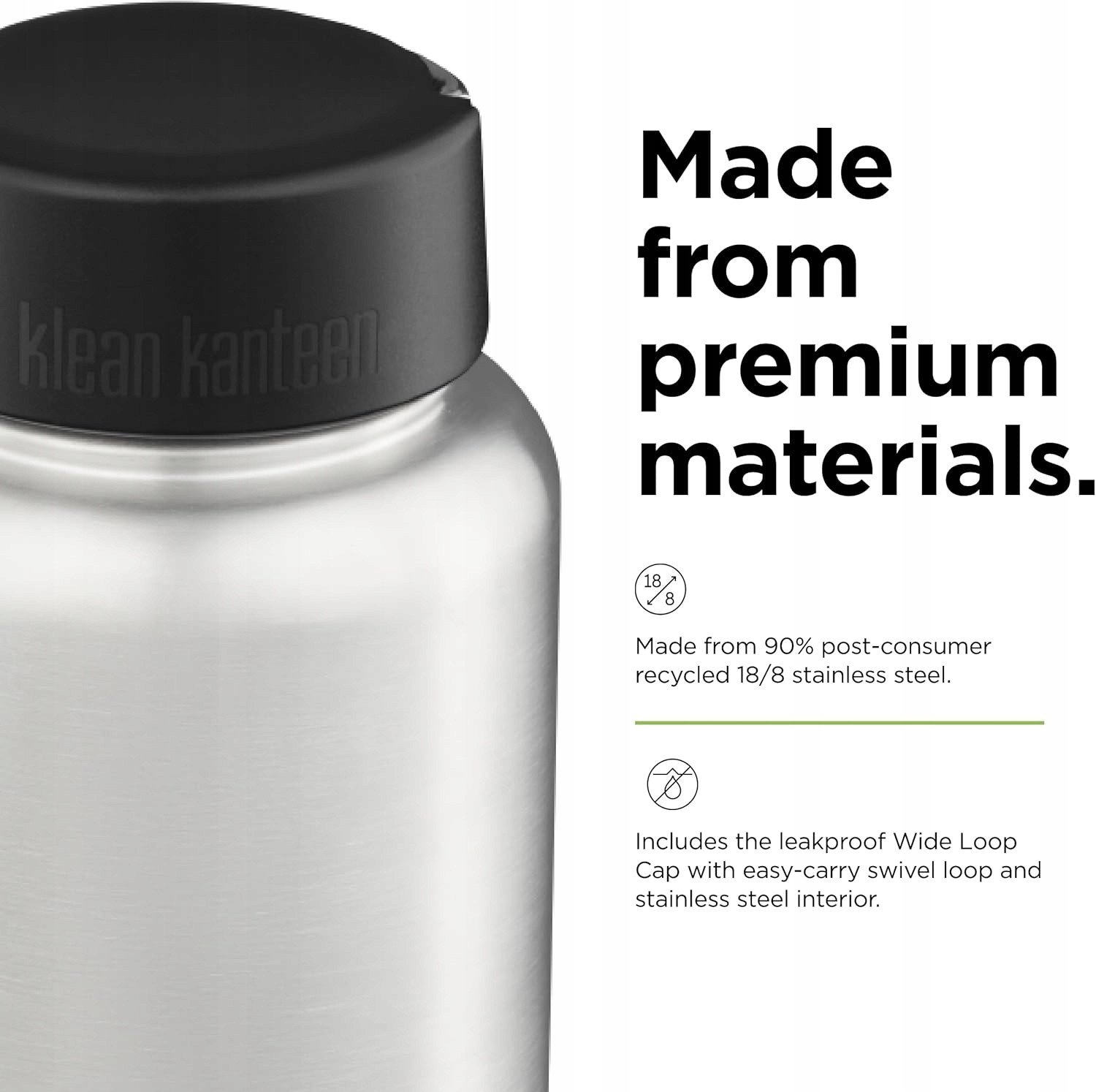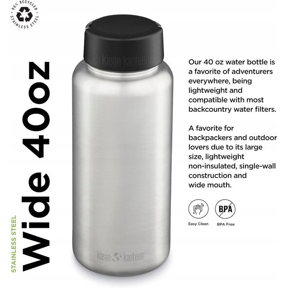Kanteen Wide (με Wide Loop Cap), 1182ml/40oz, Βουρτσισμένο Ανοξείδωτο